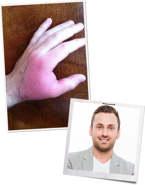 The bite was so bad his hand was swollen and in constant pain. He had tried aspirin, ibuprofen, and even “harder” drugs but NOTHING stopped his incredible discomfort.